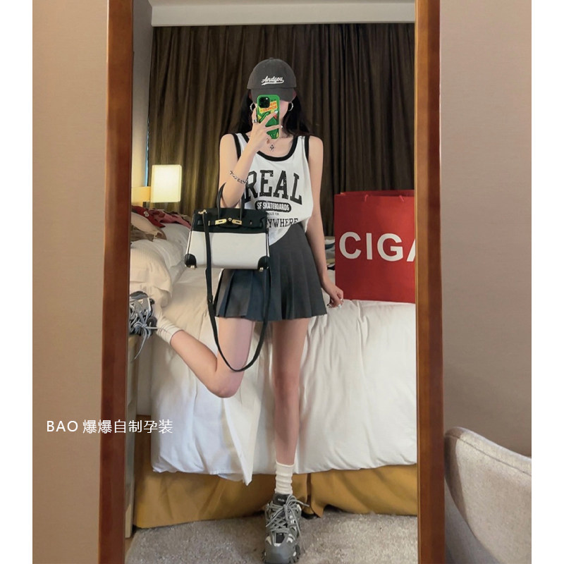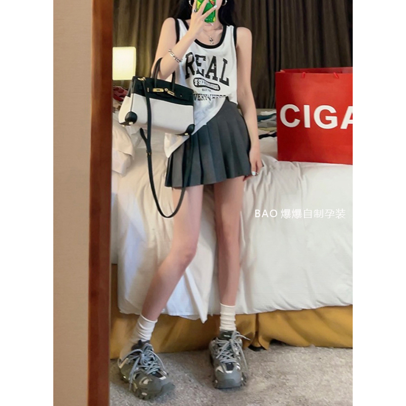 孕妇高腰百褶短裙夏季2025新款薄款韩版灰色显瘦A字托腹半身裙子