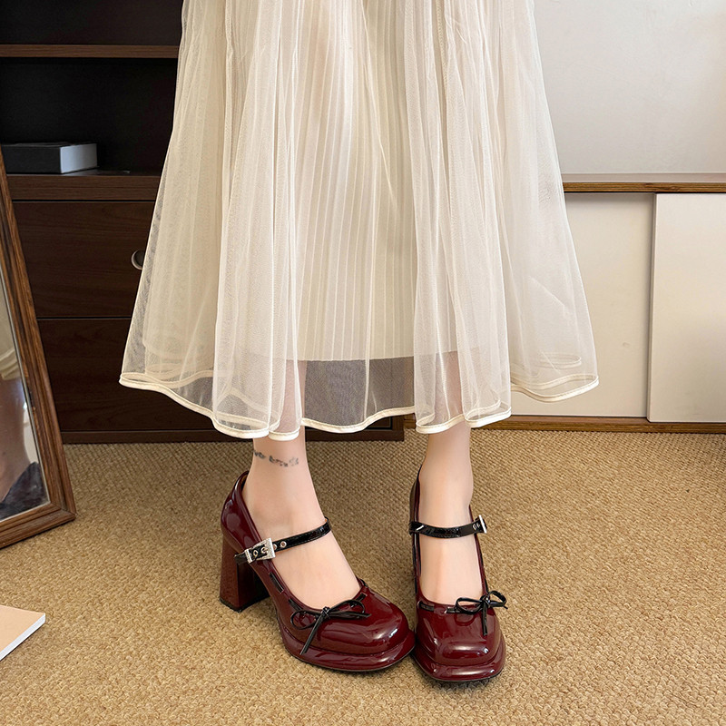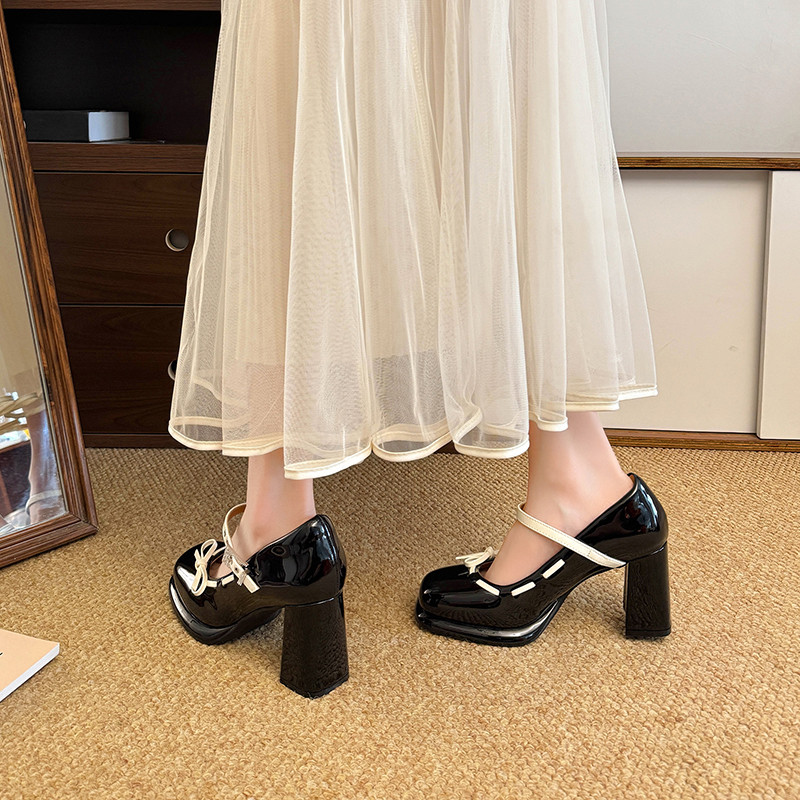 法式蝴蝶结玛丽珍厚底粗跟单鞋
