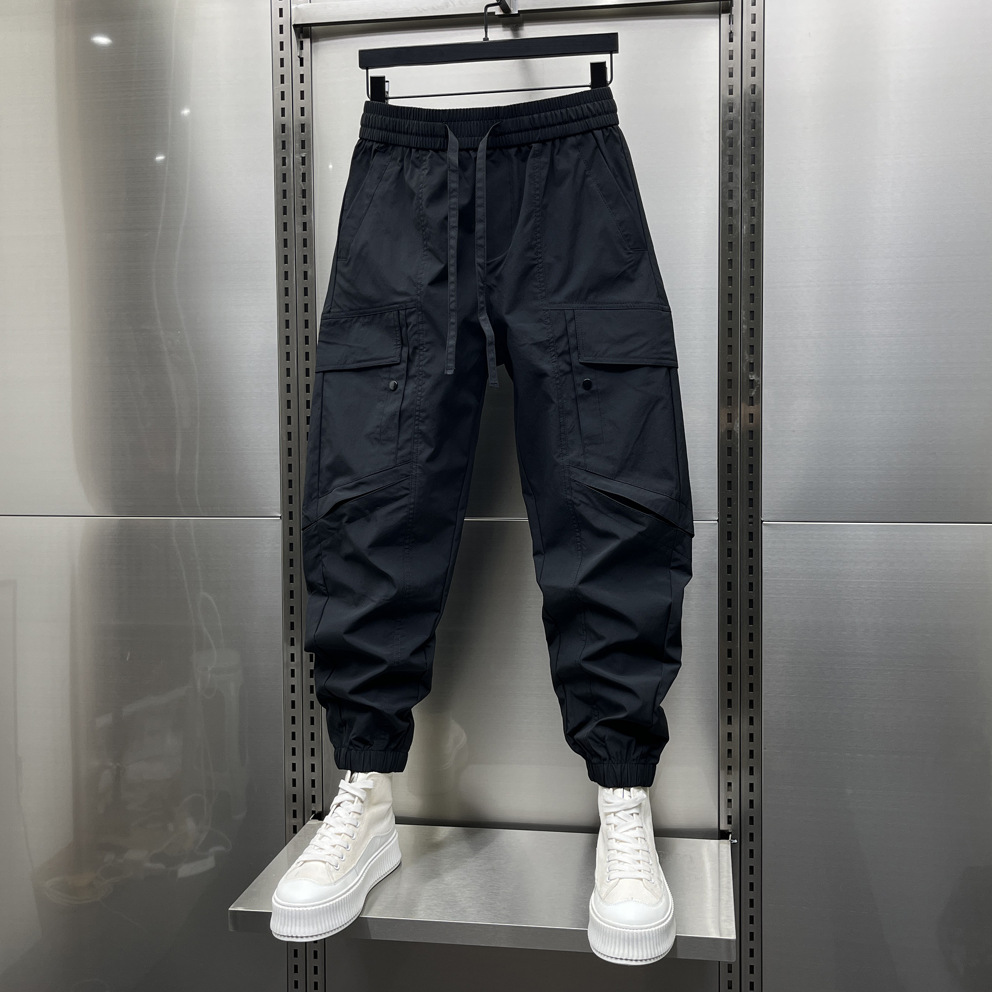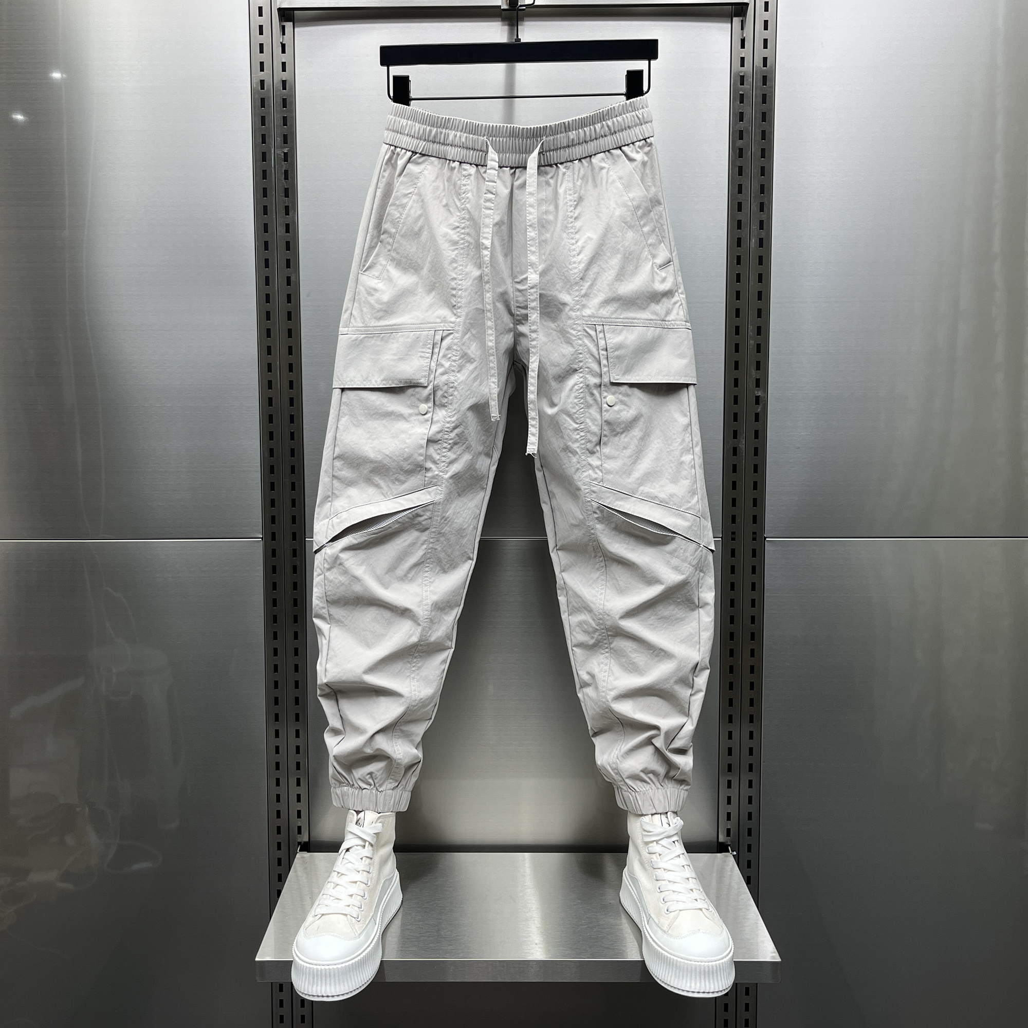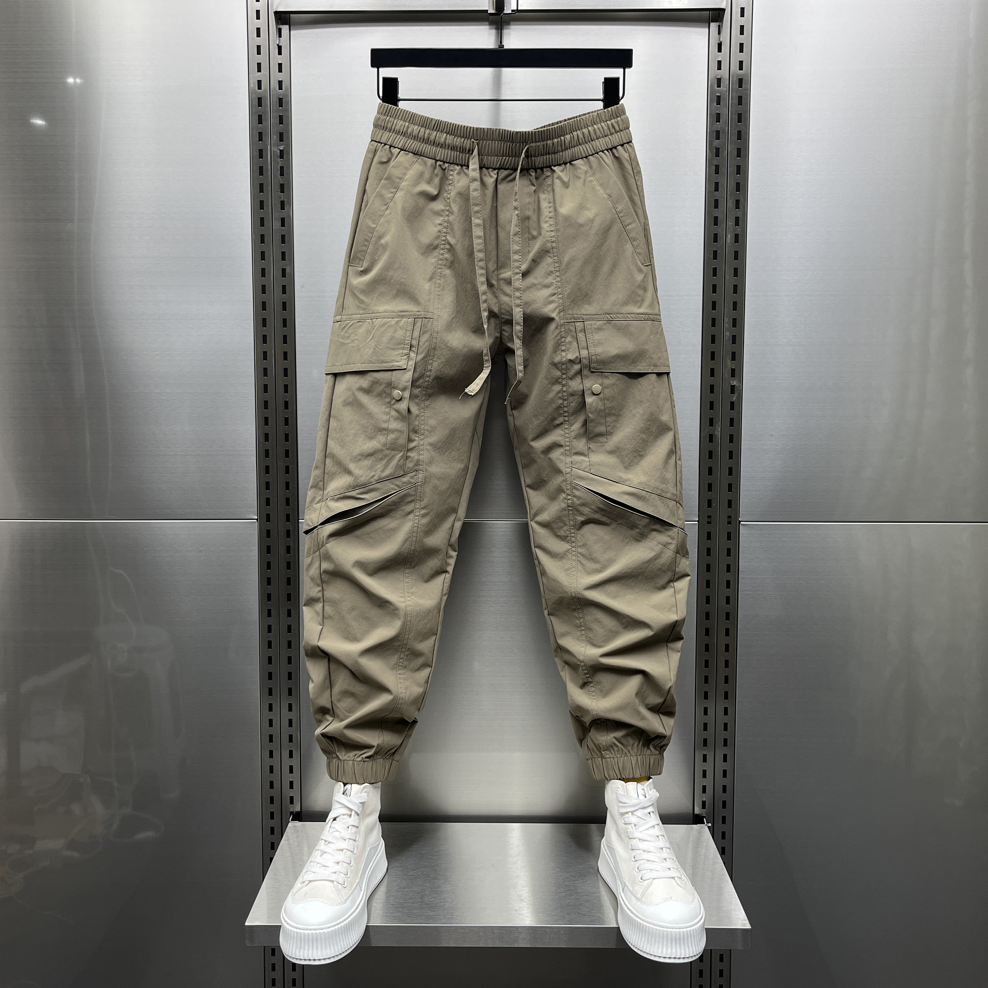 夏季新款男士工装束脚裤潮牌宽松大口袋直筒九分裤青年帅气运动裤