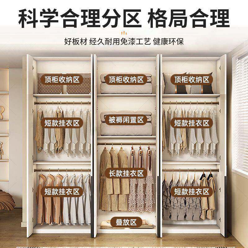 实木整体衣柜家用卧室挂衣区多极简衣橱现代简约奶油风板式衣橱