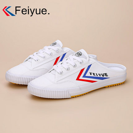 飞跃2025新款经典复古国货透气帆布女鞋小白鞋男懒人一脚蹬半拖鞋