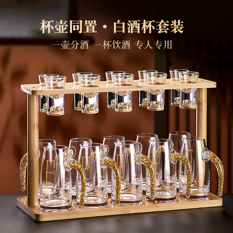 高档轻奢水晶玻璃白酒杯套装家用中式一口小酒杯子二两分酒器酒具