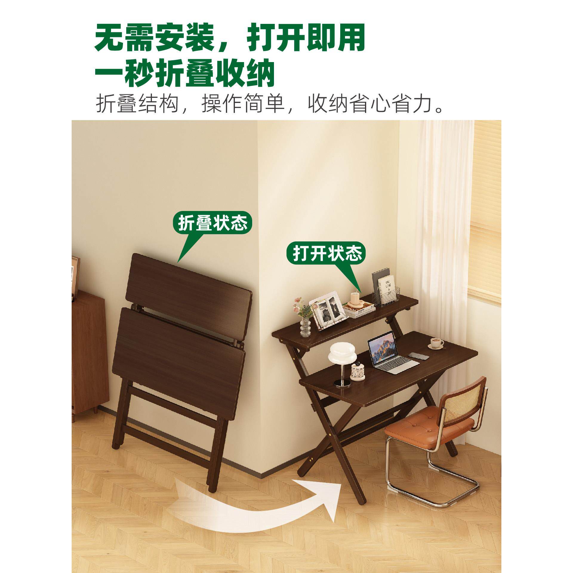书桌可折叠桌子儿童学习桌实木家用客厅卧室书房阅读电脑桌写字桌