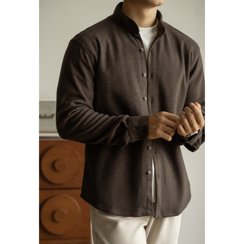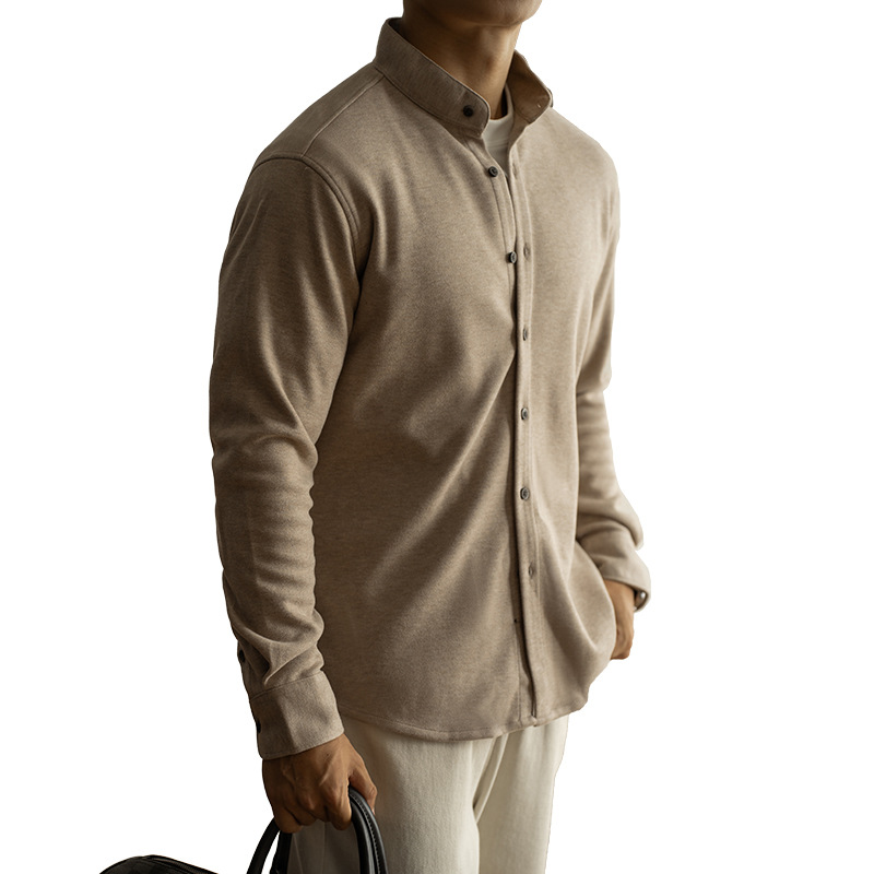 老钱风轻熟磨毛羊毛混纺长袖衬衫男士2025秋保暖内搭立领衬衣