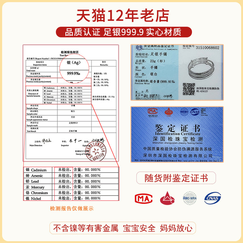 银手镯婴儿虎年新生儿见面礼满月宝宝礼物小孩银饰儿童银镯子男女