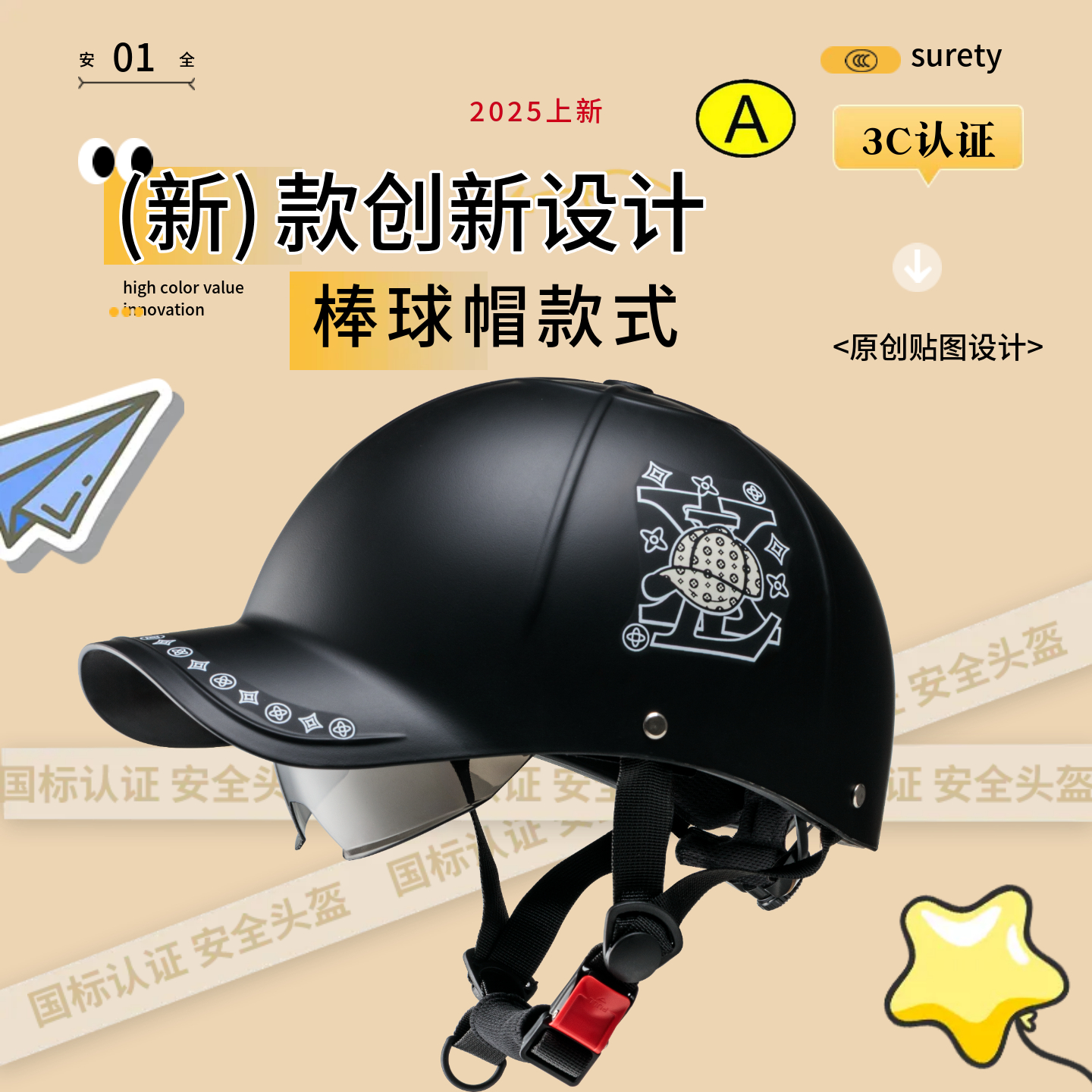 3C认证新款鸭舌帽头盔电动车女棒球盔男通用夏季天防晒透气安全帽