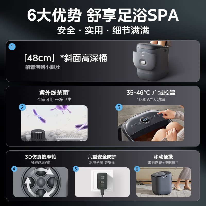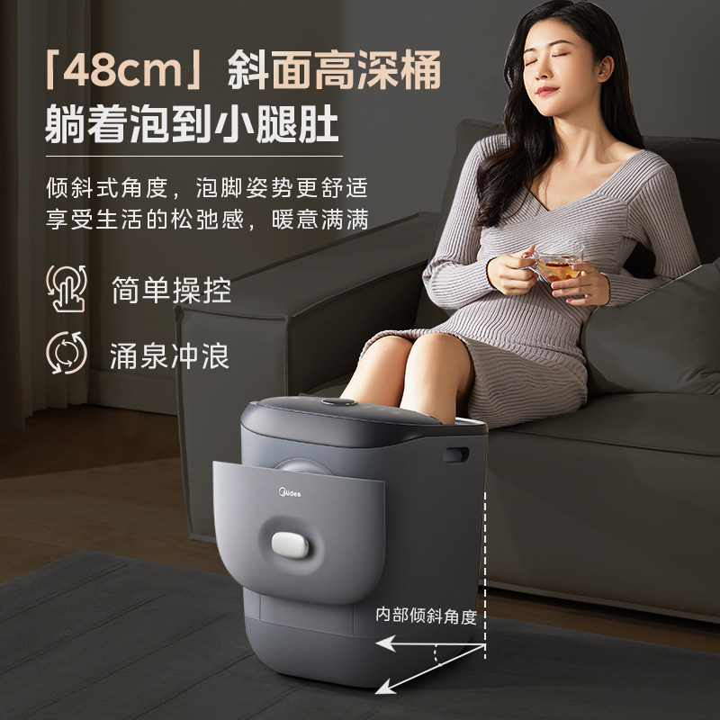 美的泡脚桶智能家用加热恒温自动按摩杀菌高深养生电动足浴洗脚盆