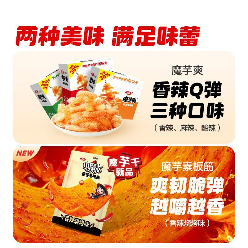 卫龙魔芋爽加量装素毛肚素板筋干韧耐嚼香辣解馋独立包装夜宵零食