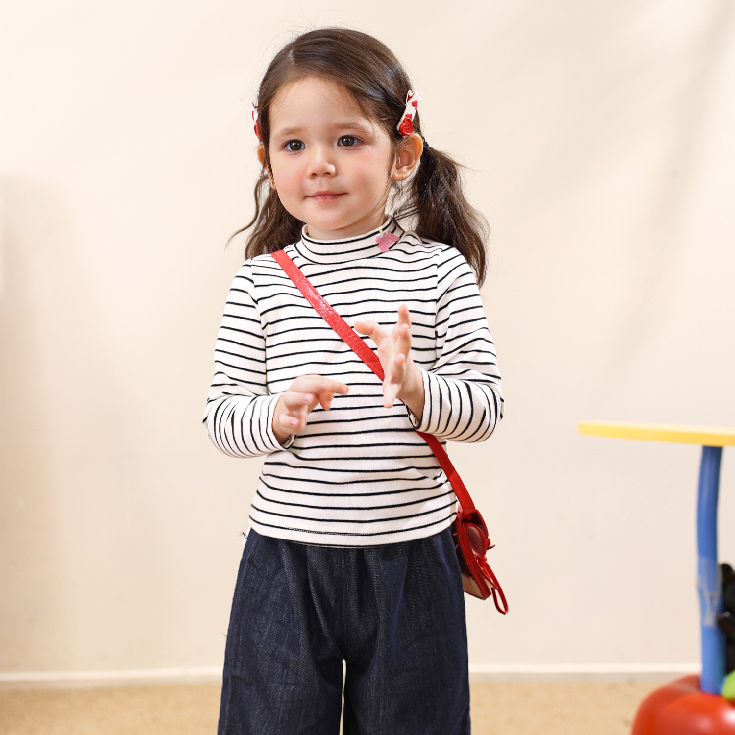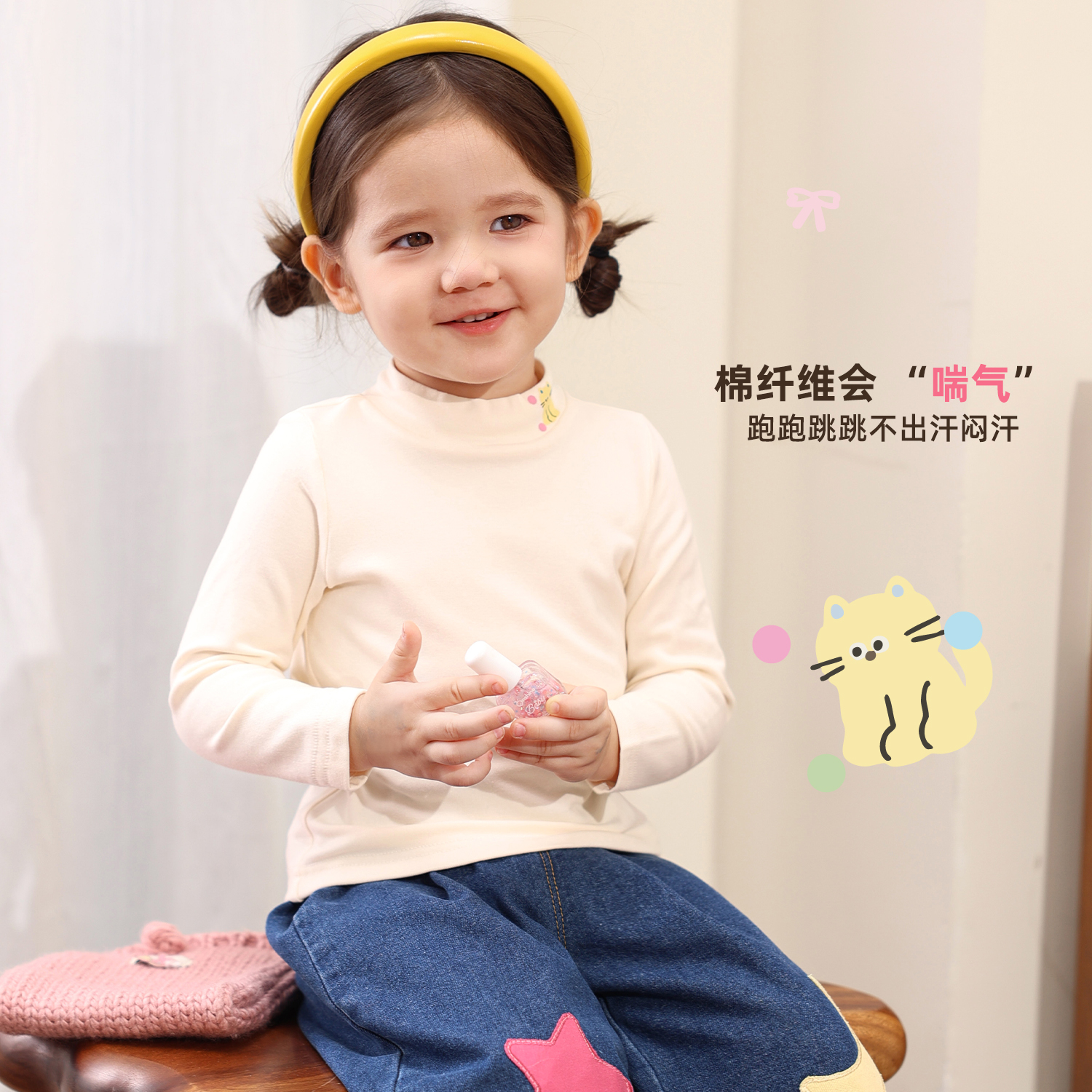 小o爸女婴童女宝宝t恤半高领2025冬季新款婴儿百搭羊绒抓毛打底衫