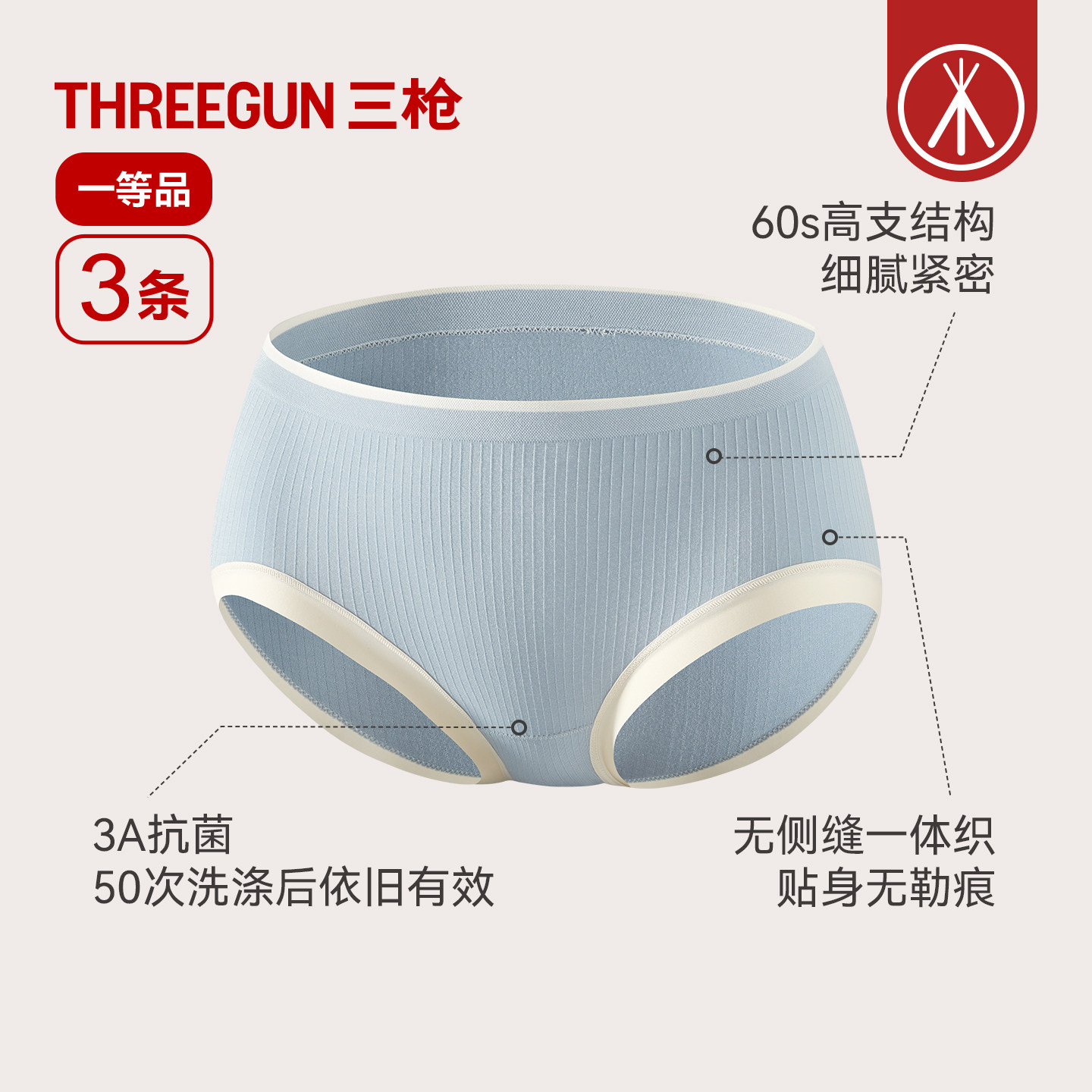 3条三枪抗菌60支莫代尔内裤无痕