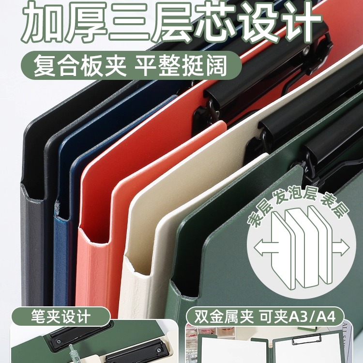 得力A4文件夹板夹资料夹强力金属夹可折叠多功能夹板写字垫板文具商务办公用品学生用试卷整理神器书写板文具