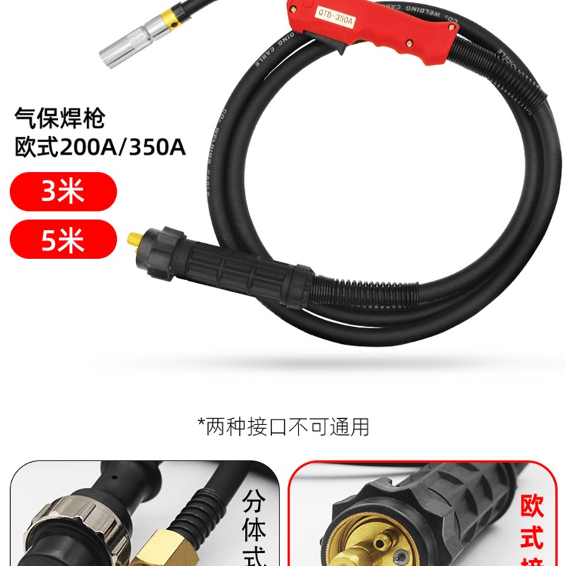 二保焊枪200A/350A欧式二氧化碳气保焊机焊枪配件总成焊把线5米