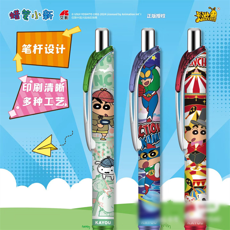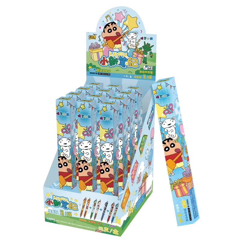 卡游蜡笔小新中性笔盲盒笔一整盒捣蛋版第一弹签字水正版卡通儿童学习用品黑色自动按动套装小学生黑笔比