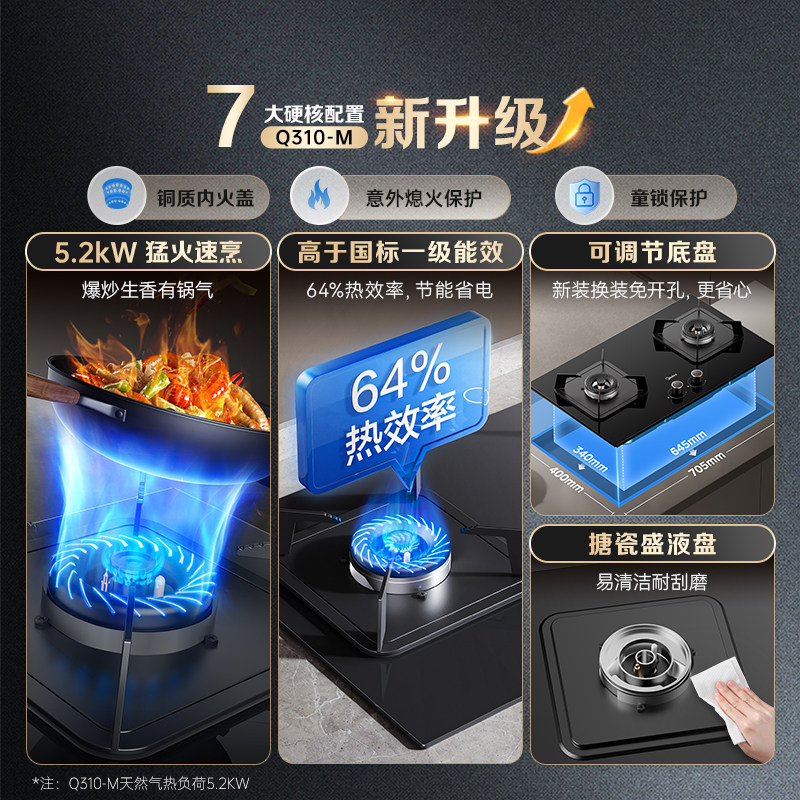 美的官方燃气灶Q310家用天然液化煤气炉猛火灶台式双灶嵌入式