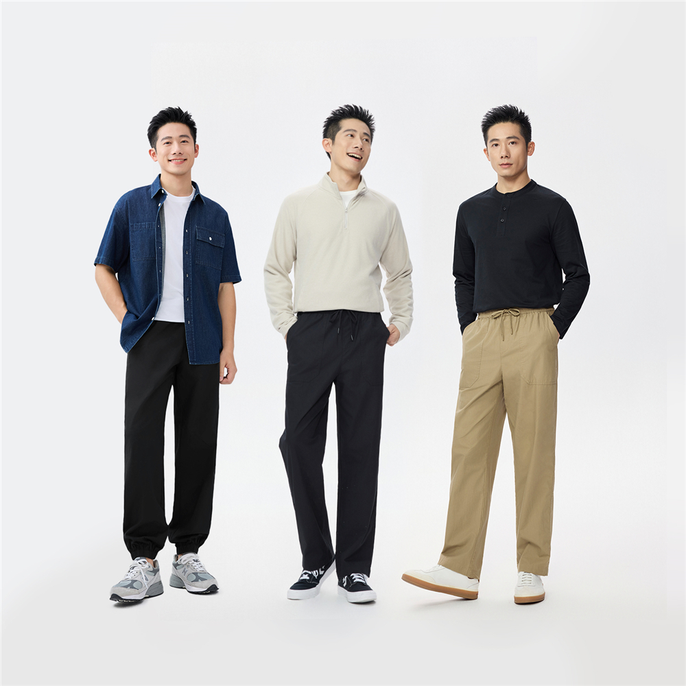 佐丹奴裤子男新款纯棉贴袋直筒裤抽绳松紧腰薄款休闲长裤01115060