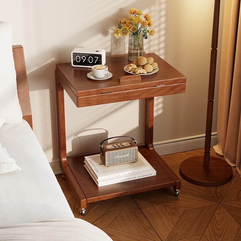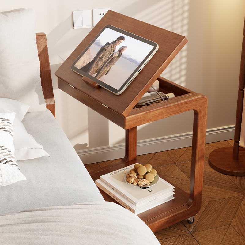 床边桌可移动电脑桌带轮实木床头置物桌倾斜桌沙发边几儿童学习桌
