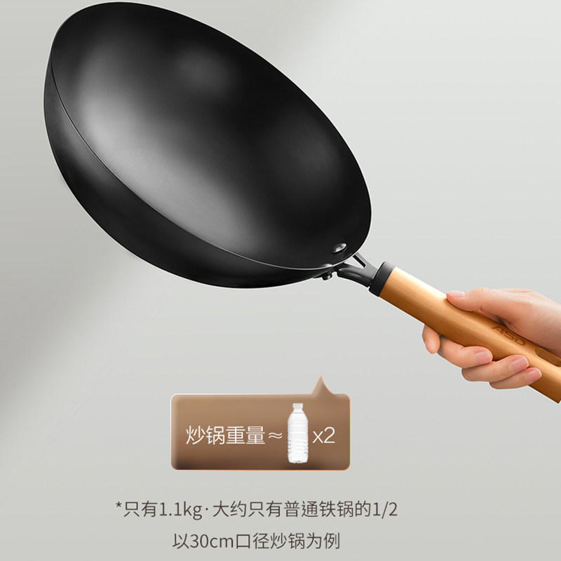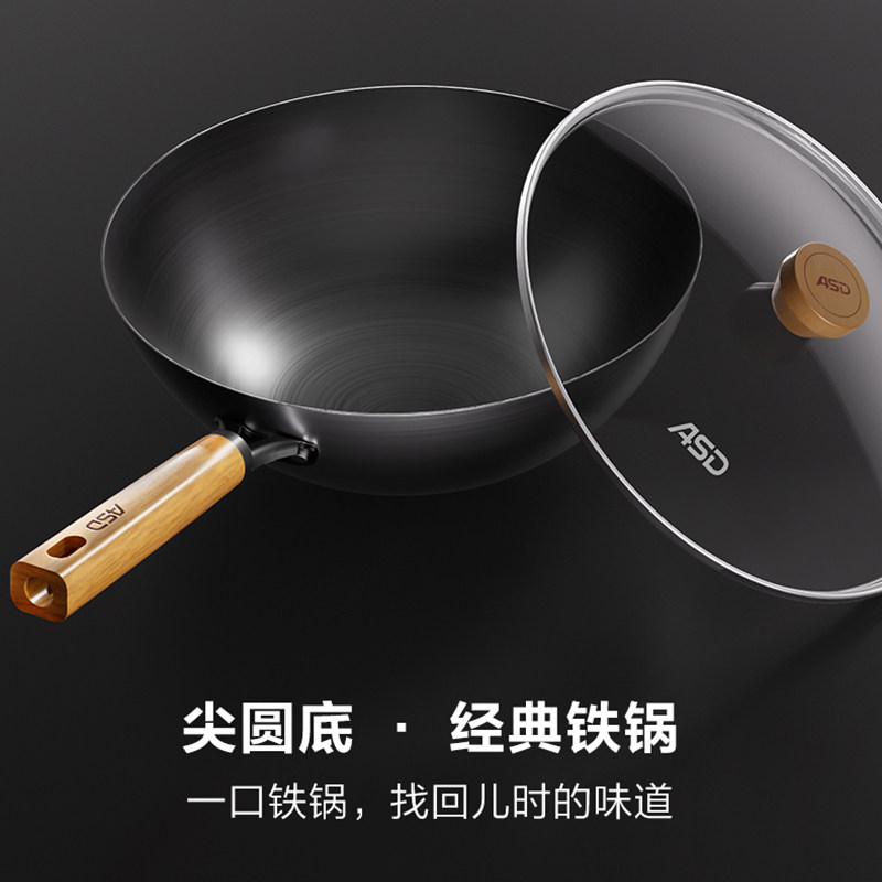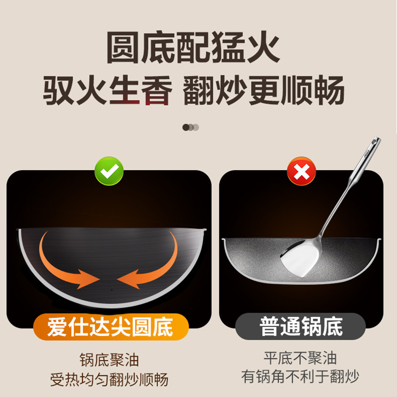 爱仕达尖圆底精铁锅炒锅老式厨房家用无涂层炒菜锅燃气灶明火适用