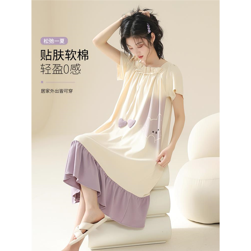 睡裙女款夏季纯棉夏款短袖2025年新款女士孕妇长款性感睡衣女夏天