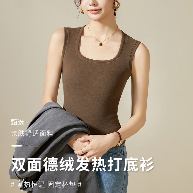 文胸bra一体式自带胸垫德绒发热加绒加厚无袖保暖背心吊带女上衣