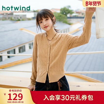 热风2025年秋季新款女士绞花开衫