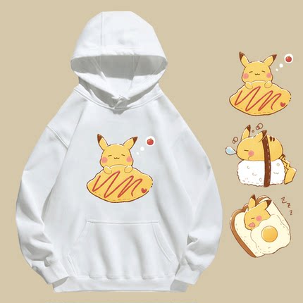 可爱皮卡丘寿司周边男女休闲新款卡通百搭定制外套上衣服带帽卫衣