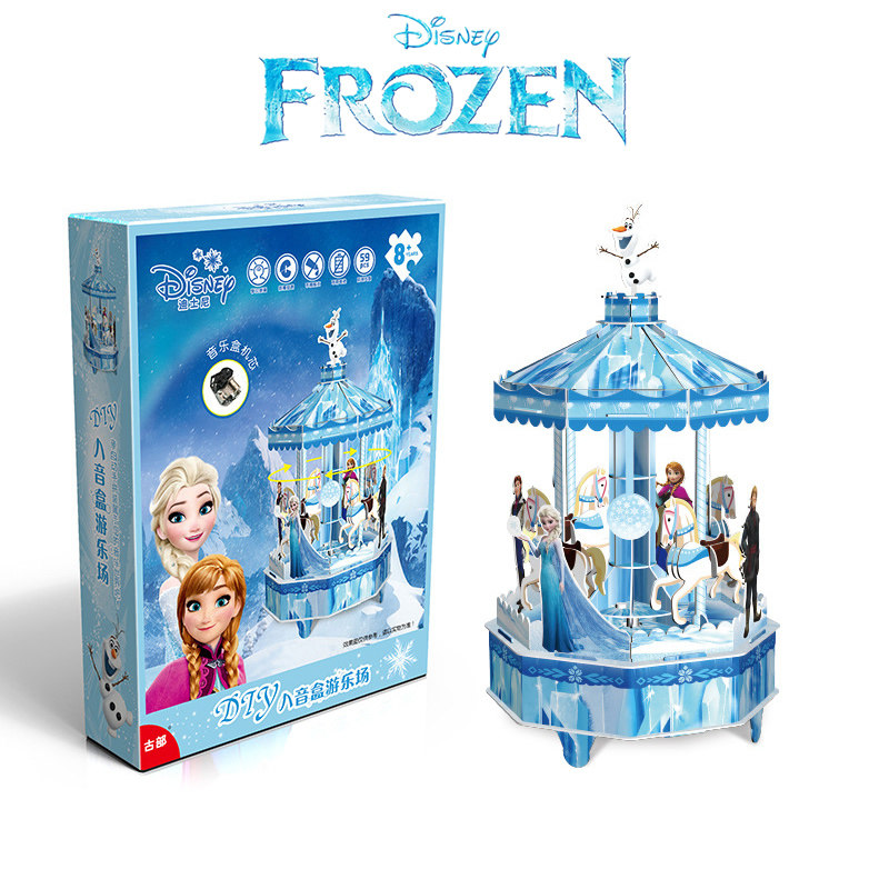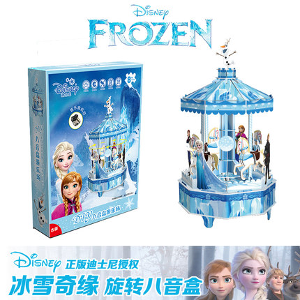 正版迪士尼冰雪奇缘2Frozen2旋转木马八音盒生日礼物3D立体音乐盒