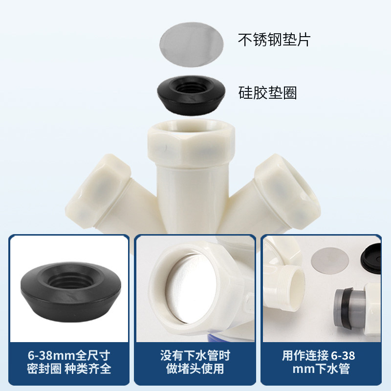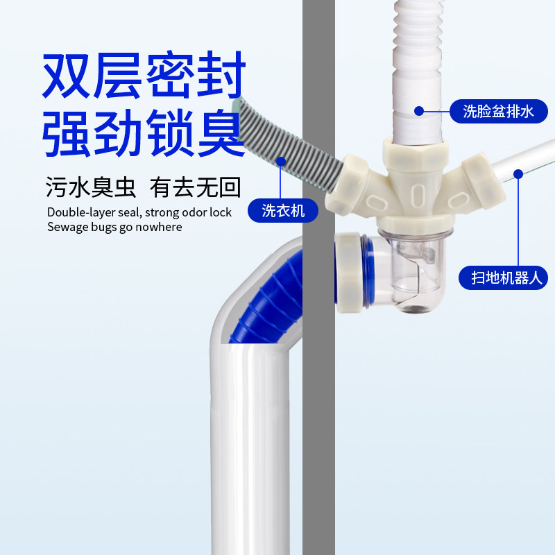 面盆45度墙排90度下水管防臭接头卫生间洗衣机防溢防反水三通接头