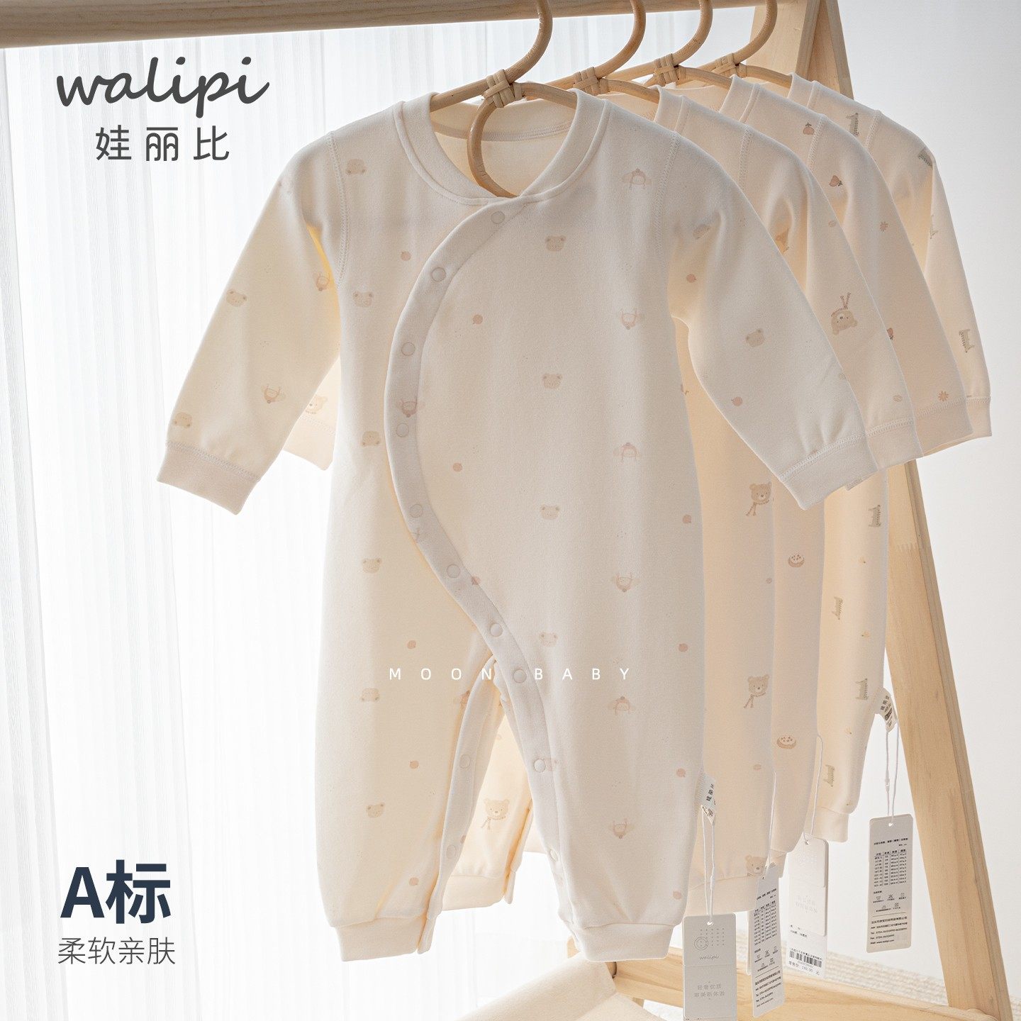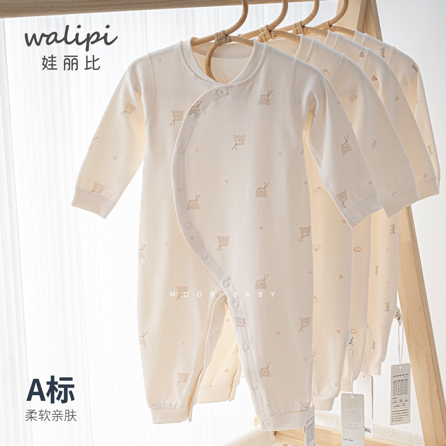 娃丽比侧开初生婴儿连体衣无骨新生儿纯棉春秋连身衣哈衣宝宝冬季