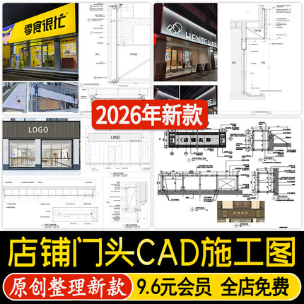 门头门面店铺店面装修设计室外餐饮装饰设计图节点图CAD施工图纸