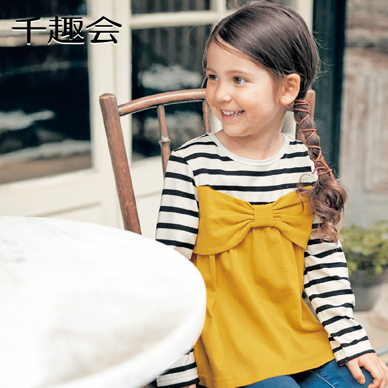 千趣会童装25春秋款女童打底衫假两件日系可爱儿童T恤
