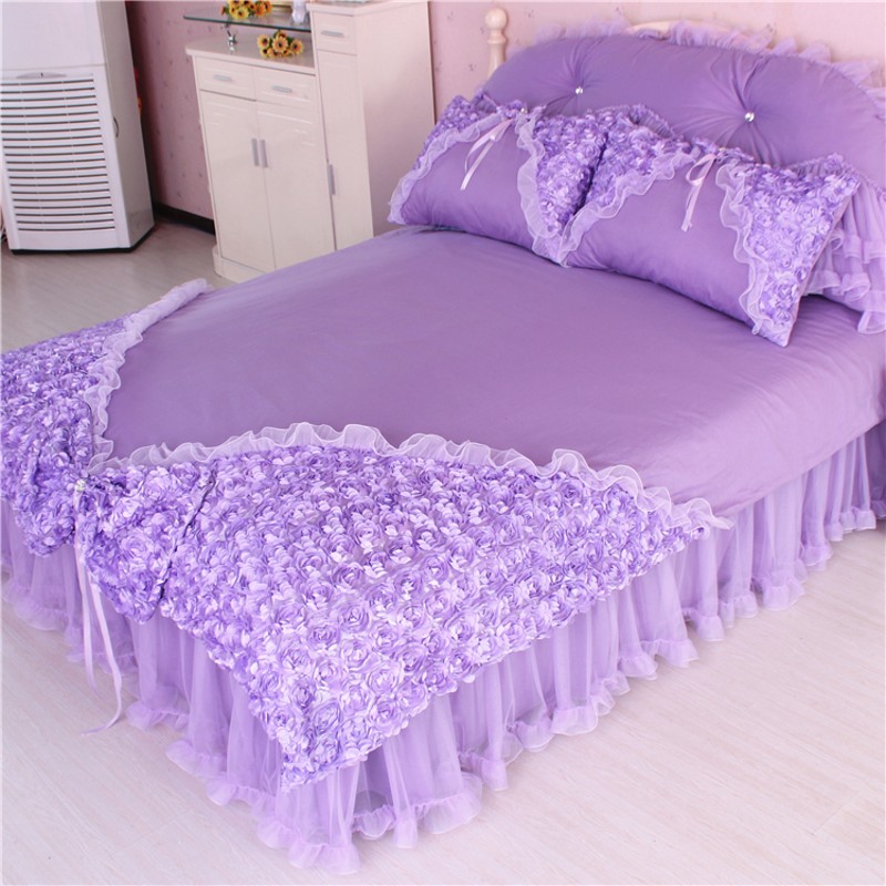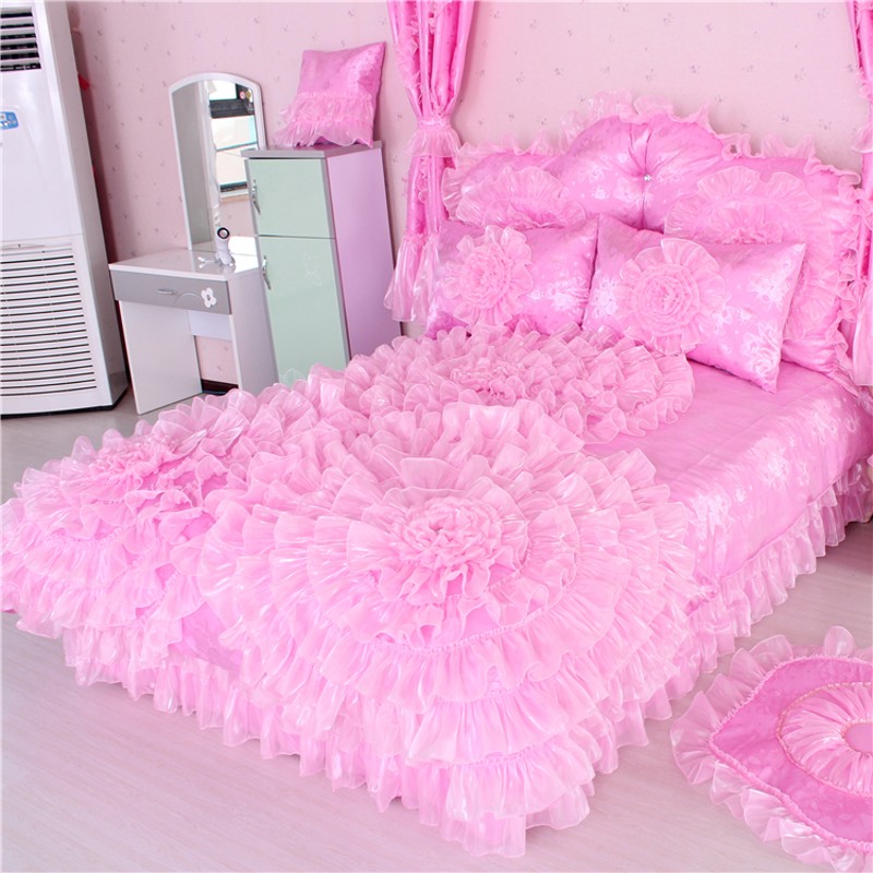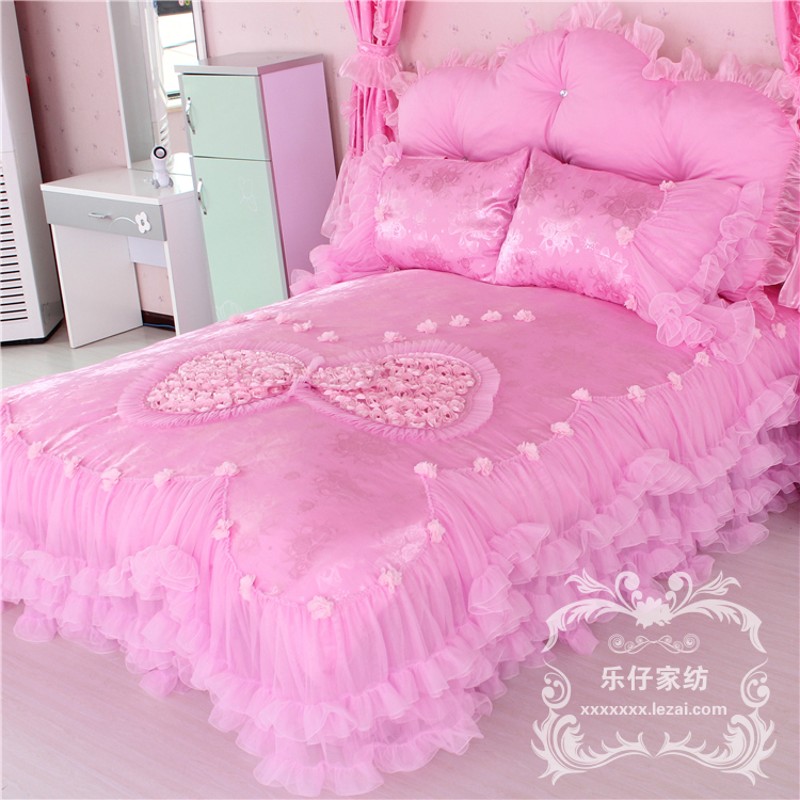 纯棉蕾丝韩式公主粉色p贡缎全棉四件套床裙式床品婚庆夏季床品套