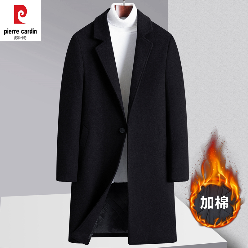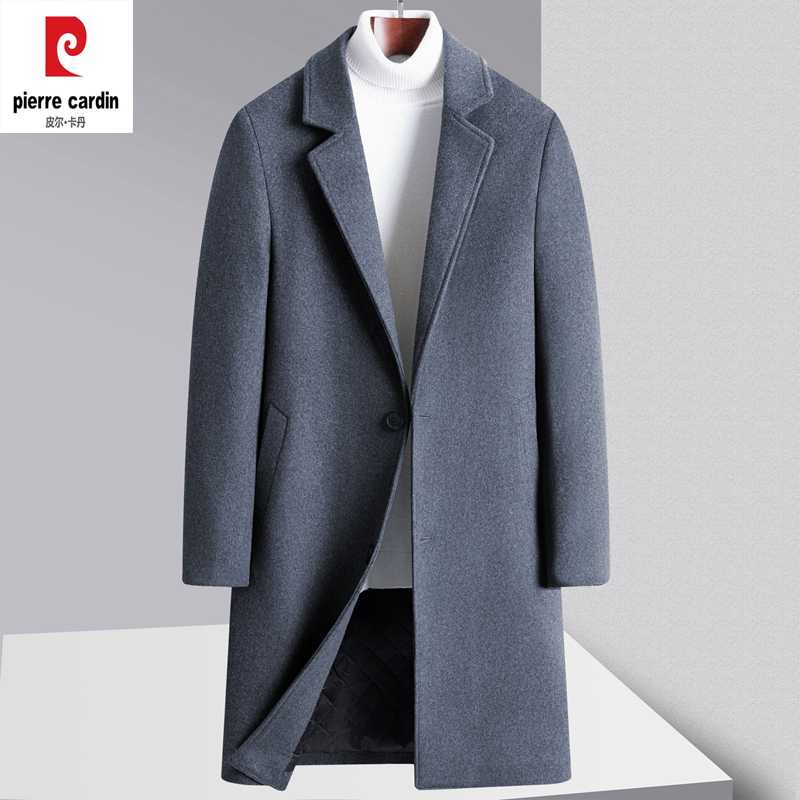 皮尔卡丹羊毛呢大衣男士中长款冬季羊绒风衣韩版休闲呢子加厚外套
