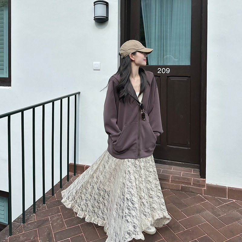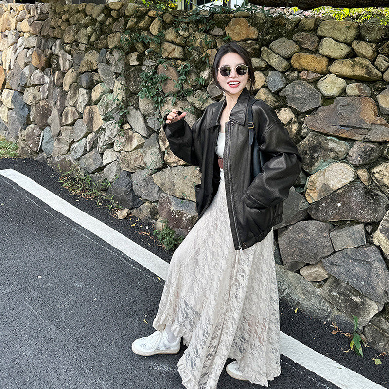 金苏一 不规则蕾丝半身裙女2026春秋韩版高腰显瘦a字裙百搭伞裙潮