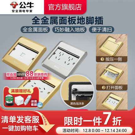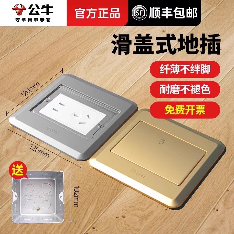 公牛地插插座单开门地插座隐形地板家用地脚插座地面插座赠送底盒