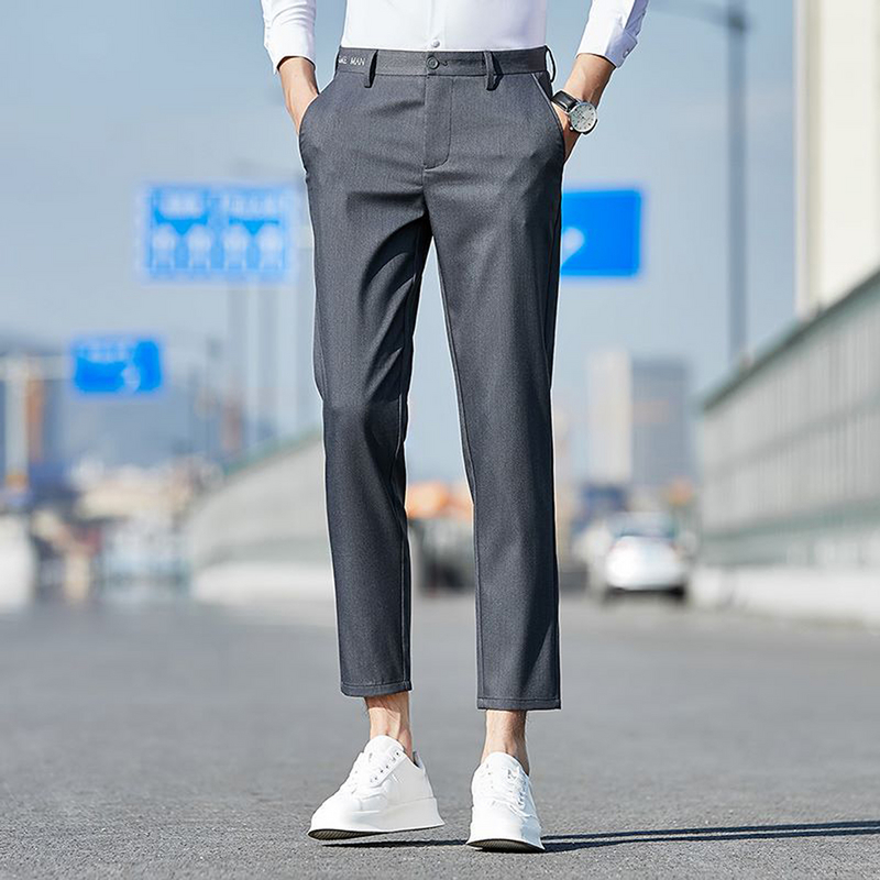 VF真维斯男装休闲裤2025春季新款黑色男款裤子修身纯色九分西裤男
