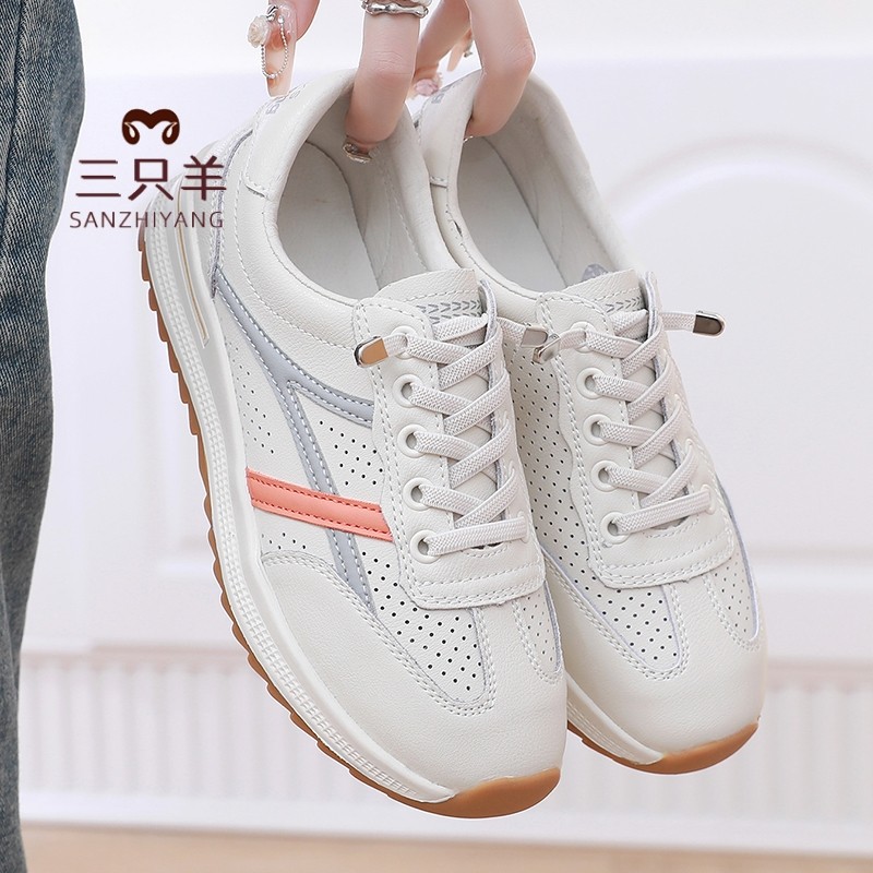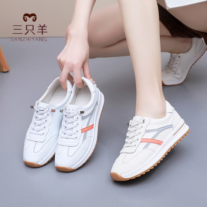 三只羊运动鞋妈妈鞋小白鞋软底真皮休闲旅游舒适中老年女鞋春秋款
