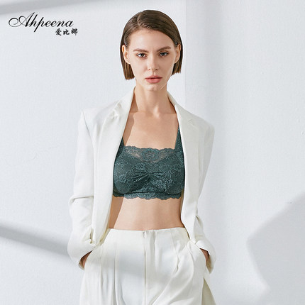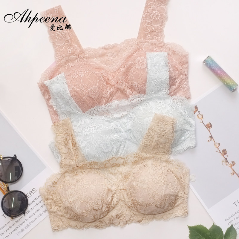 爱比娜夏季薄款无钢圈蕾丝内衣女一字领抹胸舒适防走光全罩杯文胸