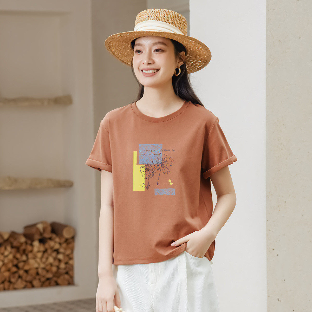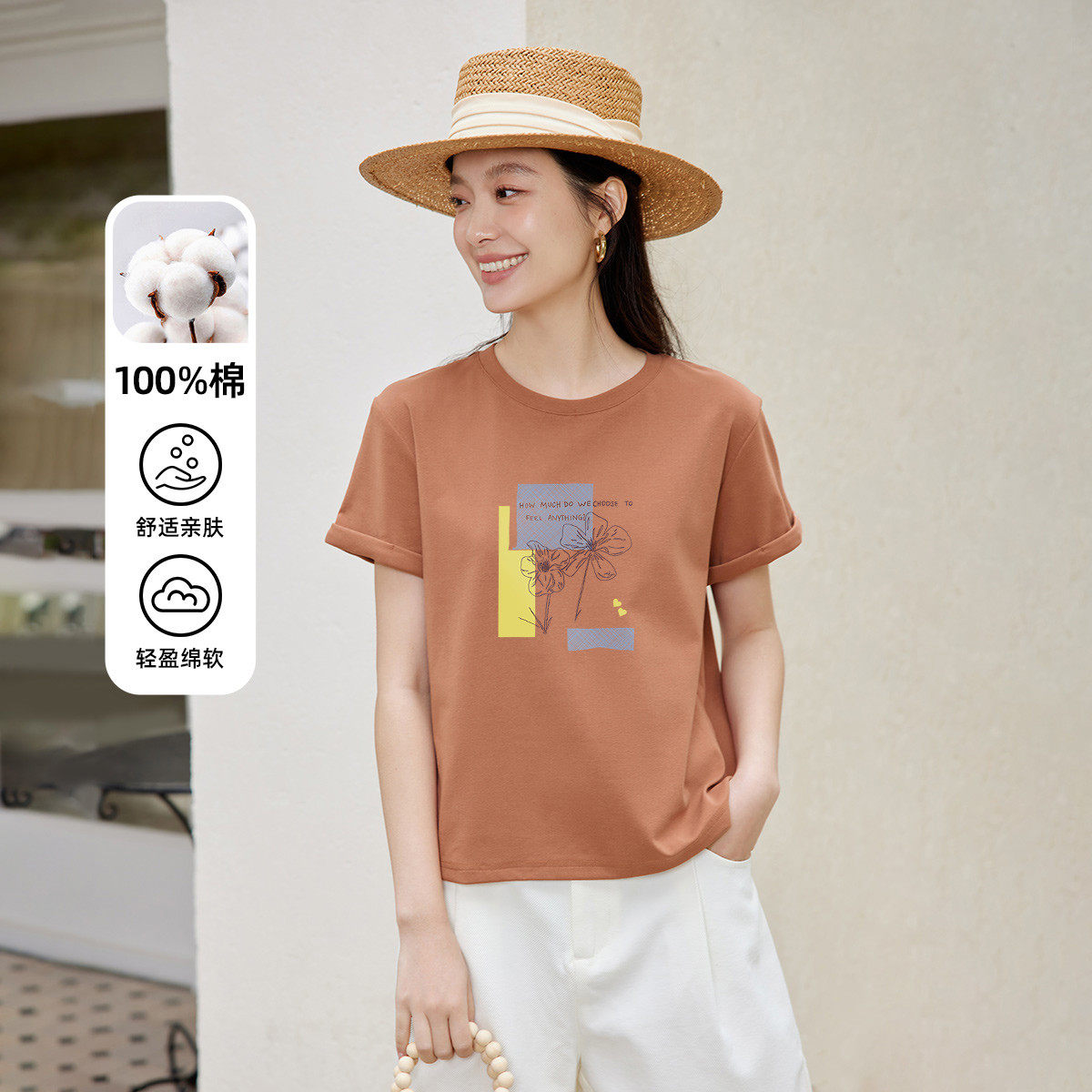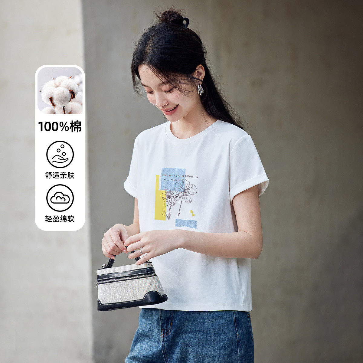 茵曼2026夏季新款正肩纯棉短袖T恤女士宽松独特超好看白色爆款