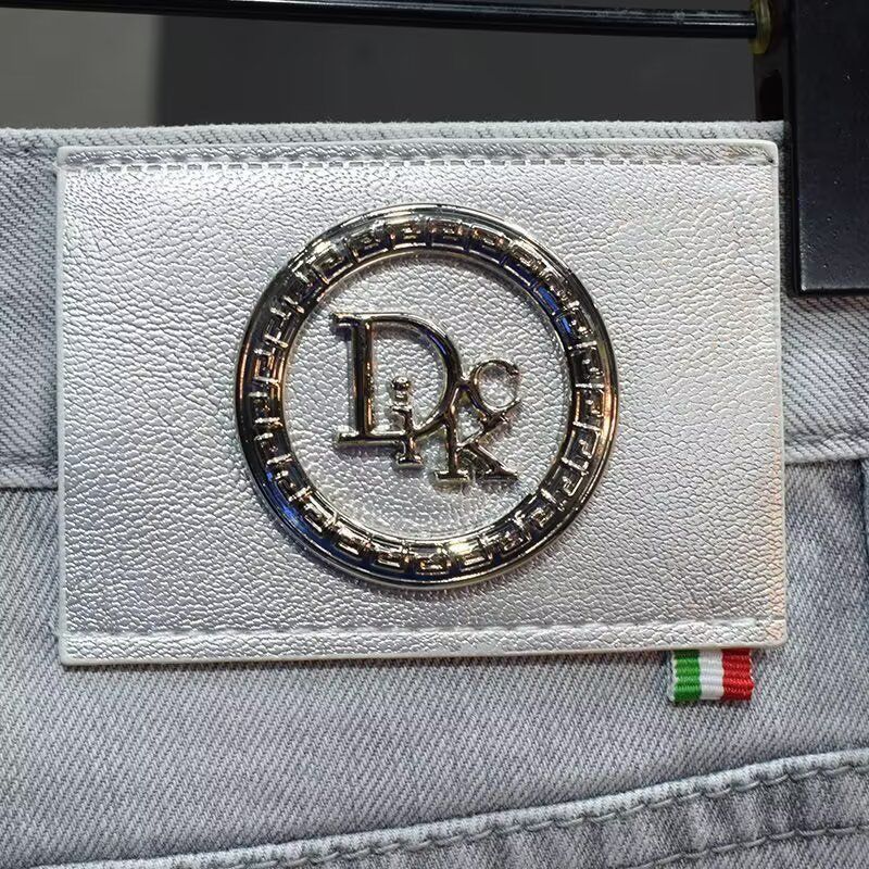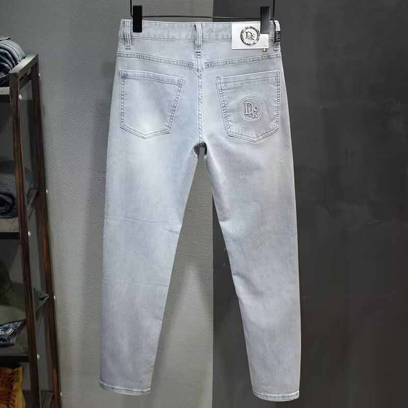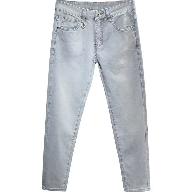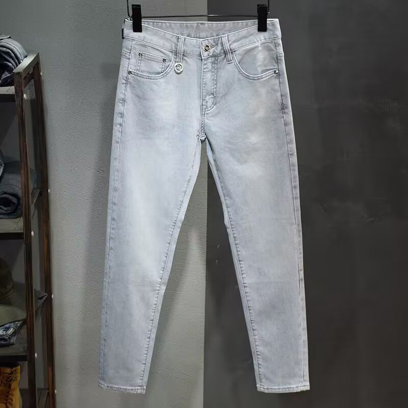 夏季新款浅色牛仔裤男高端轻奢印花修身小脚潮牌帅气百搭休闲长裤
