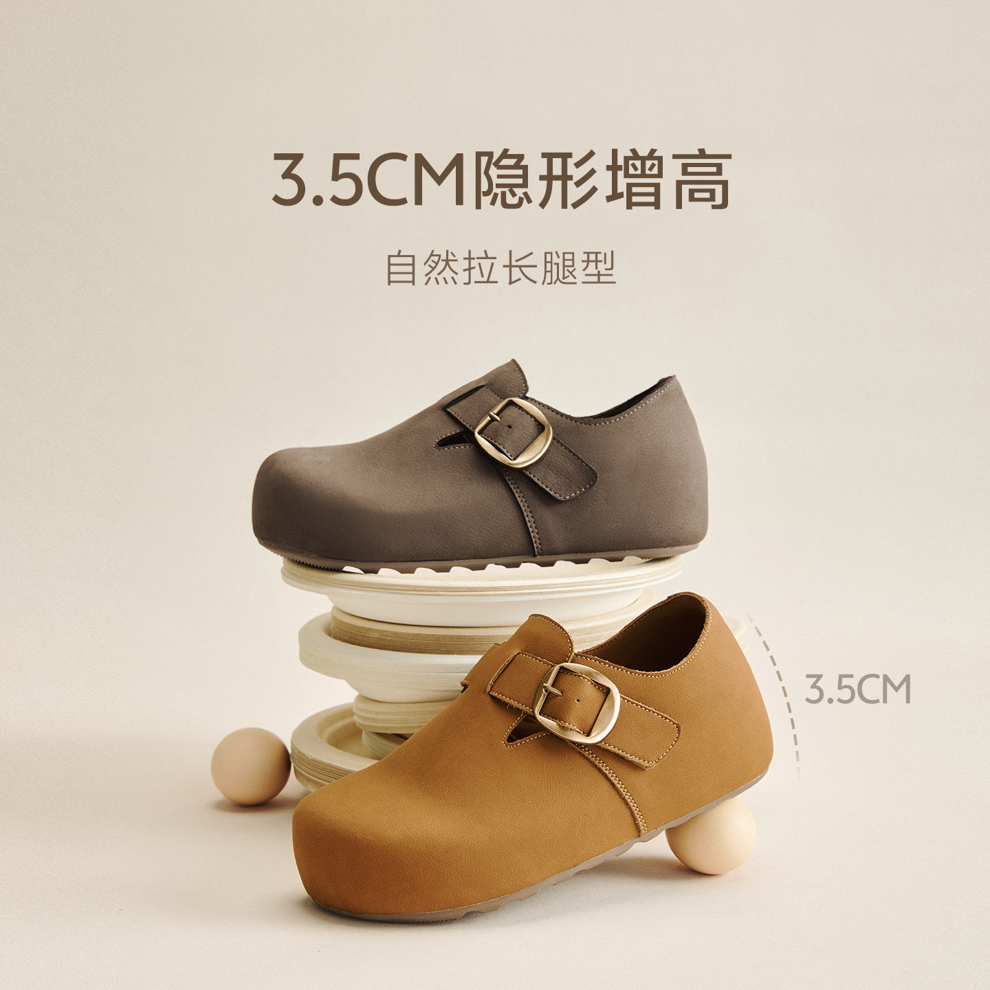 森达内增高勃肯鞋厚底女鞋冬26春新款商场同款女款灰色厚底博肯鞋