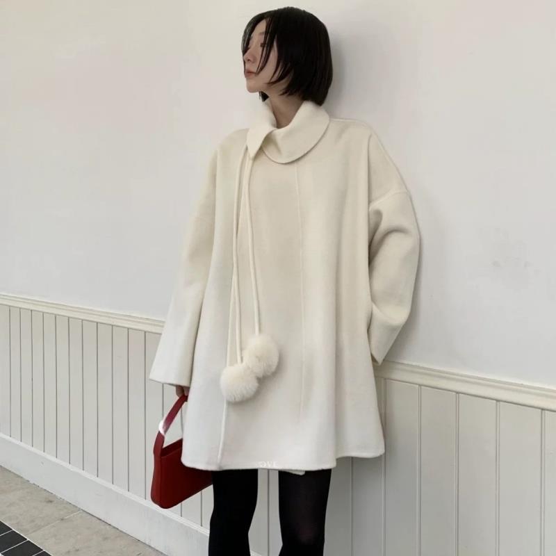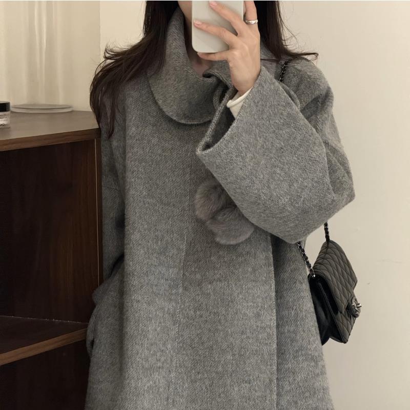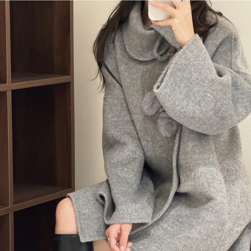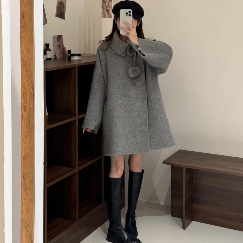 灰色双面羊绒大衣女2025秋冬新款韩系中长款高级感羊毛呢斗篷外套