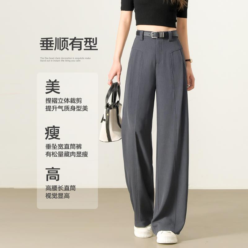 阔腿裤高级感垂感女2025春夏季薄新款小个子冰丝休闲灰色西装裤子