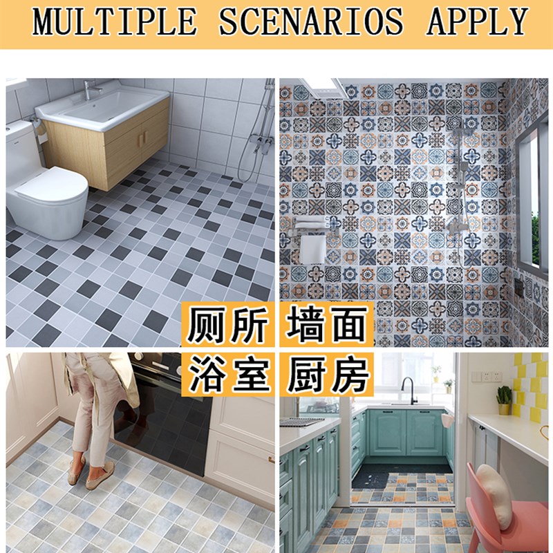 厕所防水防滑地板贴浴室卫生间瓷砖地面贴纸翻新改造地贴耐磨自粘