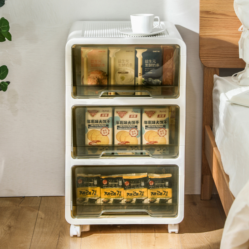 抽屉式收纳柜子家用零食玩具儿童塑料储物整理架可移动多层置物柜