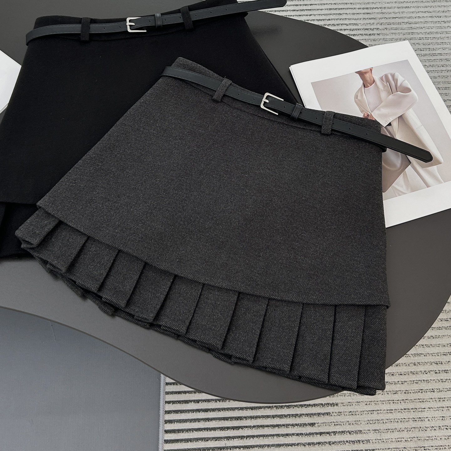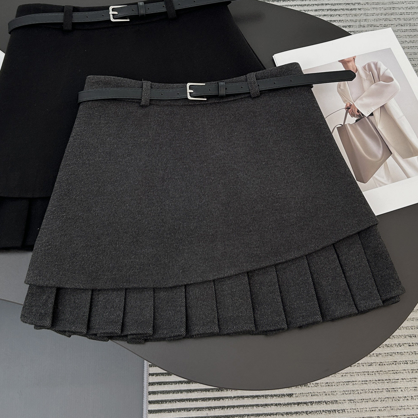 加厚设计感毛呢百褶裙半身裙女秋冬季高腰显瘦包臀裙灰色A字短裙