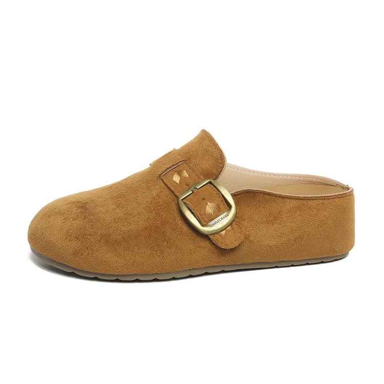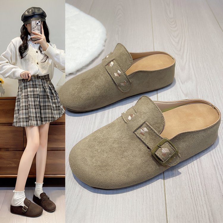 2025秋季新款包头拖女鞋橡一字带懒人拖学生平底软底黑色外穿单鞋