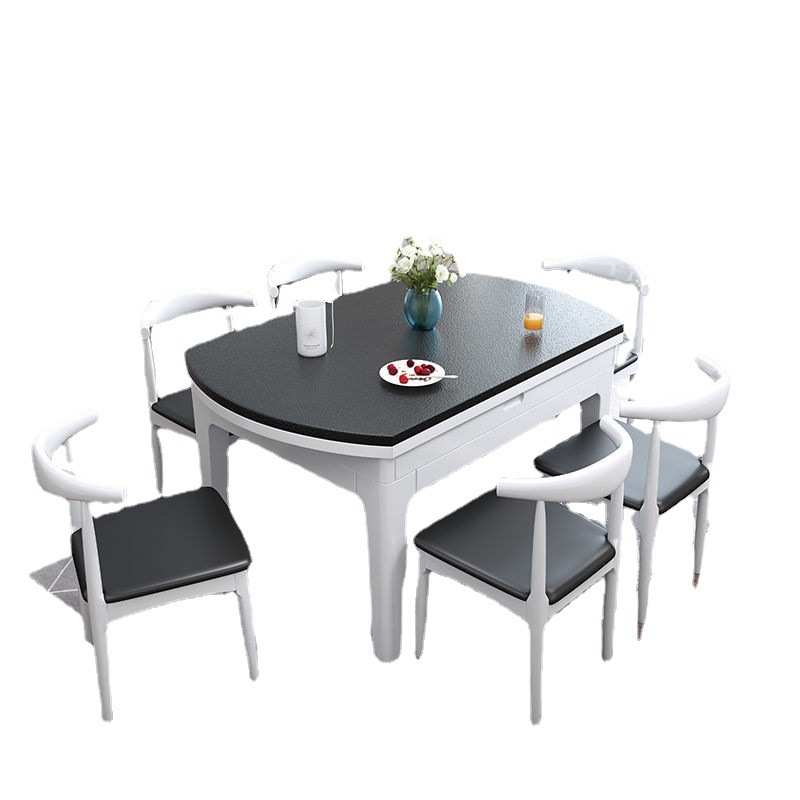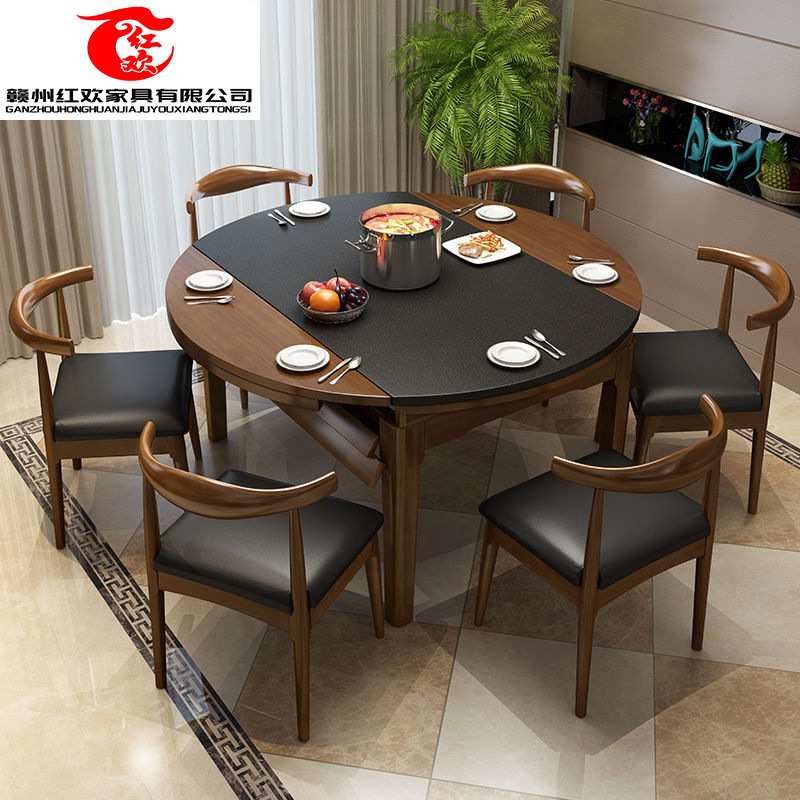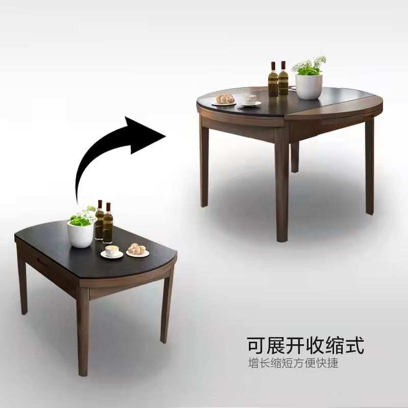 实木北欧餐桌现代方变圆餐桌椅跳台组合可伸缩小户型电磁炉圆桌椅