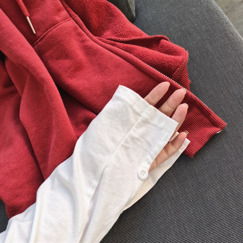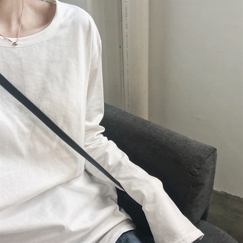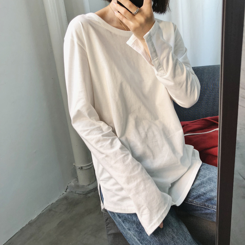 打底长袖白色纯棉t恤女装韩版宽松新款圆领双开R叉内搭打底衫女潮