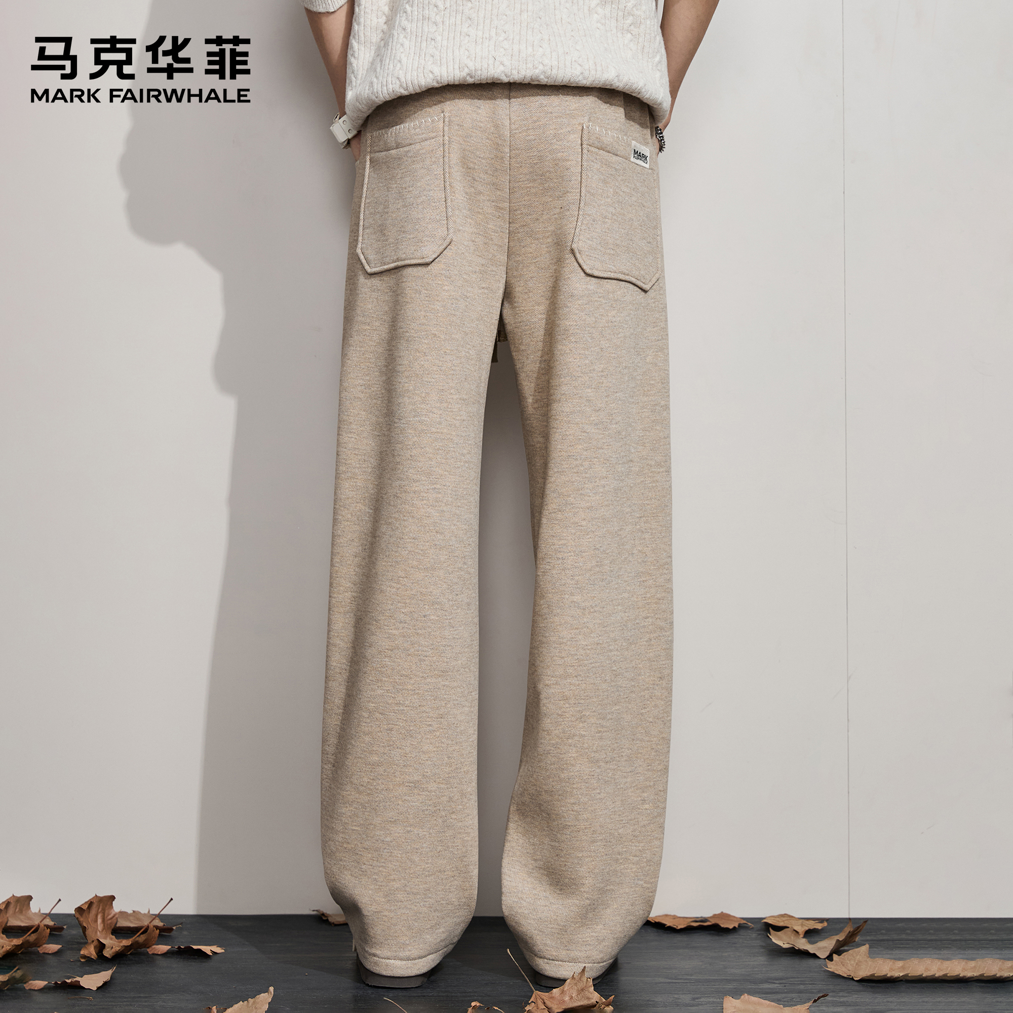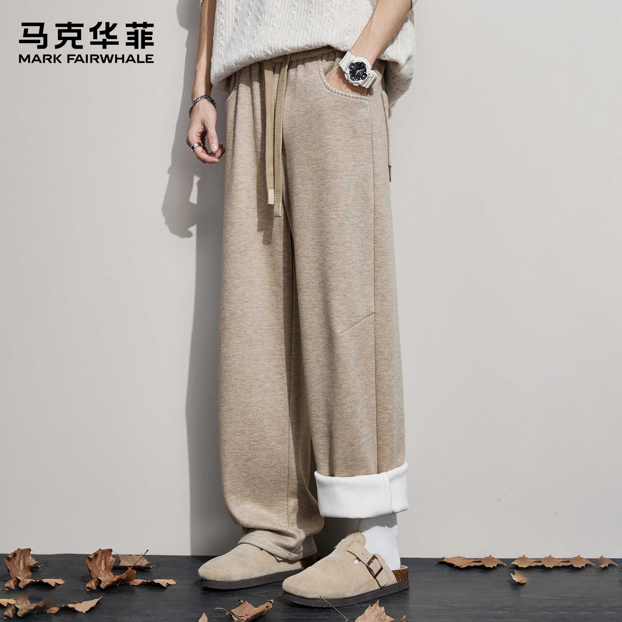 马克华菲卡其色卫裤男秋冬新款时尚高级感加绒加厚保暖复古弯刀裤