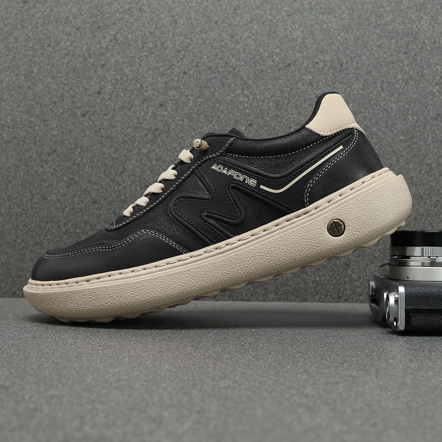 头层牛皮男鞋2025秋季新款复古时尚厚底工装鞋男轻便透气休闲板鞋